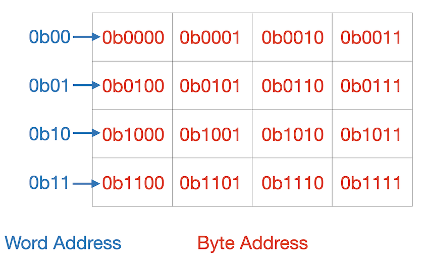 Note In class, our memory is byte addressable. In camera, the memory is word addressable. Therefore, the page offset in Camera will tell us the word offset within the page, not the byte offset. The diagram below shows the difference between a byte address and a word address.